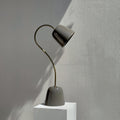 Lámpara de mesa de edición limitada en tono verde profundo. Bora Doca es una pieza escultórica de gres esmaltado.