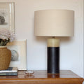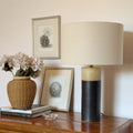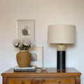 Base de cerámica gres con pantalla de tela.