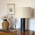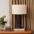 Base de cerámica gres con pantalla de tela.