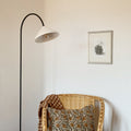 Pantalla de cerámica gres con soporte de fierro de base redonda.
