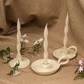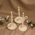 Tu complemento perfecto para lograr una decoración especial. Cada palmatoria es creada a mano logrando un aspecto único. Encuentra sus tres versiones en tono blanco mota, ideales para decorar centros de mesas, comedores y rincones encantadores.