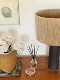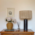 Base de cerámica gres con pantalla de yute.