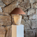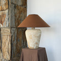 Base de cerámica gres con pantalla cónica de lino.